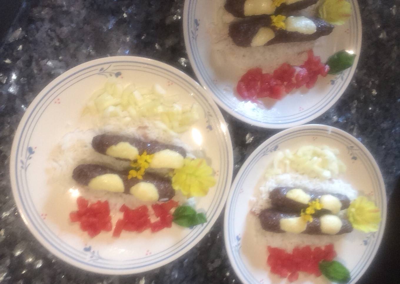 - Yo lo acompañe con un colchón de arroz y panceta y tomates y pepino 🥒 quedan muy ricas espero que las hagas y que pongas me gusta 👍 y tu foto respuesta