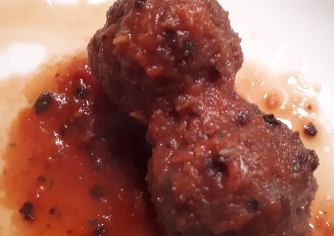 - Primero se hacen las albóndigas: se mzcla en un bol la carne con los dos huevos batidos, 3-4 cucharadas de pan rallado, 1 diente de ajo picado muy fino (yo primero lo corto en láminas, luego lo pico), una cucharadita de comino y sal. Se forman las bolitas y se rebozan con lo que queda de pan rallado. Se fríen y se reservan.