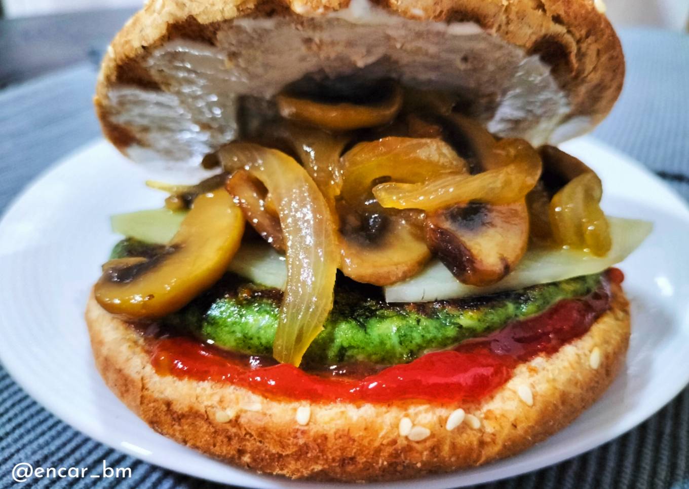 Aquí tenéis una hamburguesa de las que más me gustan, pero hoy el cuerpo me pedía azúcar, y ha tocado prepararla con sabor dulzón.