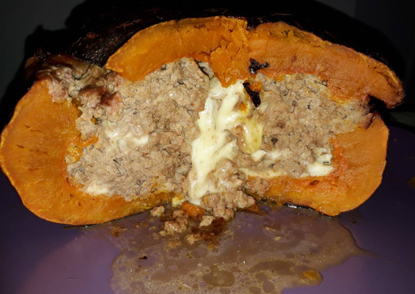 - Con el relleno listo colocarlo en el zapallo. Colocar la tapa y llevarlo en una placa a horno medio aproximadamente 45 minutos dependiendo del horno o hasta que esté tierno.